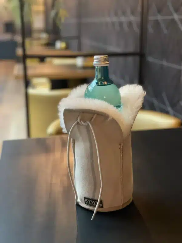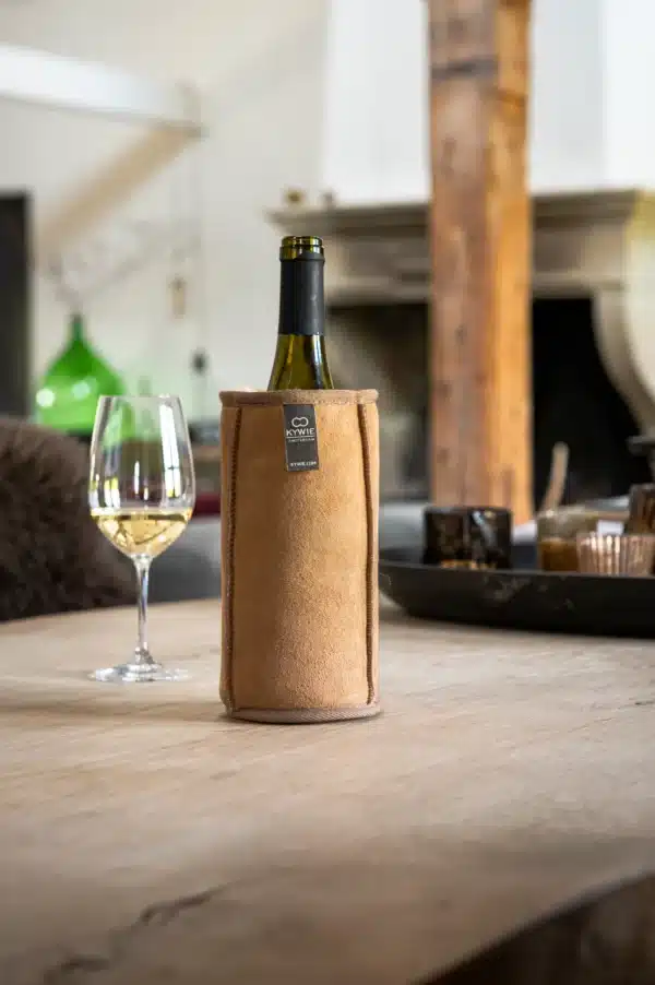 Deze koelers van het merk KYWIE zijn handgemaakt van 100% natuurlijke schapenvacht van Texelse schapen. Deze koeler houdt je fles wijn of champagne écht uren koud. De Kywie koelers zijn er in verschillende formaten. Voor iedere fles een passend formaat.