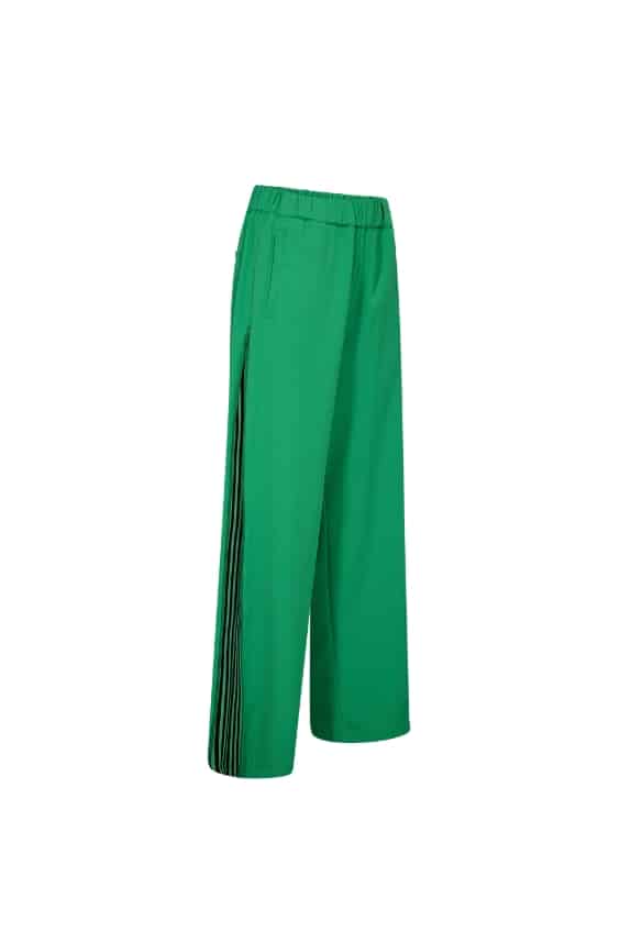 Trending colour, groene broek van Co´Couture. De broek heeft elastiek in de taille en ritssluitingsdetail langs de benen.