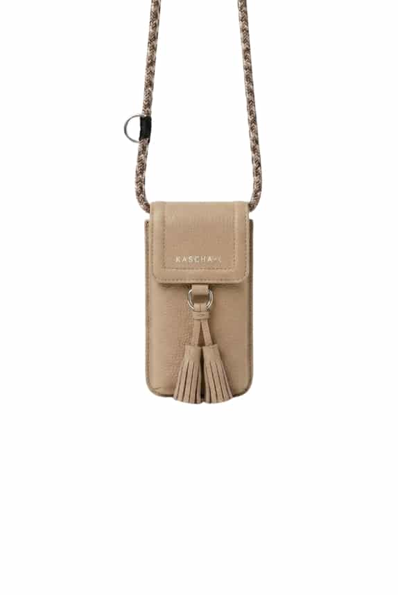 Standaard zit het Basic Cord bevestigd aan de Phonebag, maar je bevestigt gemakkelijk elk koord uit de Kascha-C collectie.