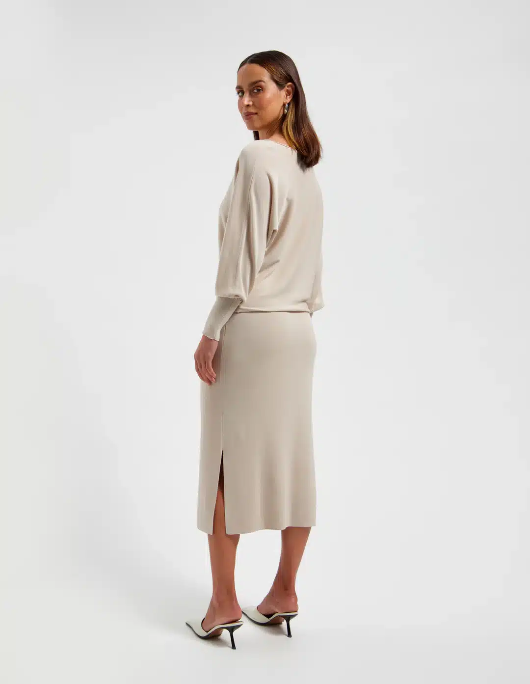 De Ultieme Set: Combineer de rok met de bijpassende Nora Sweater voor een ton-sur-ton look die luxe en eenheid uitstraalt.