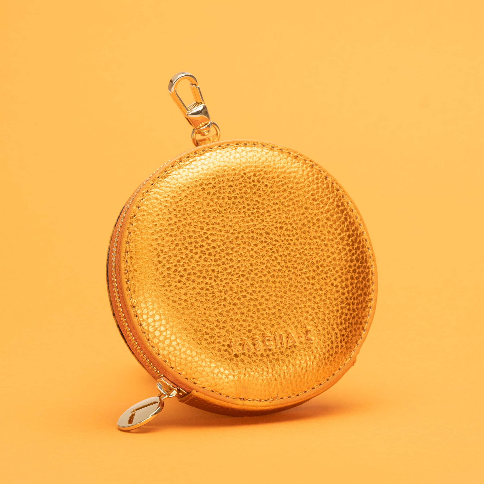 De Wallet de Rond is een verfijnd accessoire dat elegantie en gemak combineert. Deze ronde, lederen wallet is prachtig afgewerkt met goudkleurige accenten en verkrijgbaar in een breed scala aan trendy kleuren en prints – zo zit jouw perfecte match er altijd tussen.