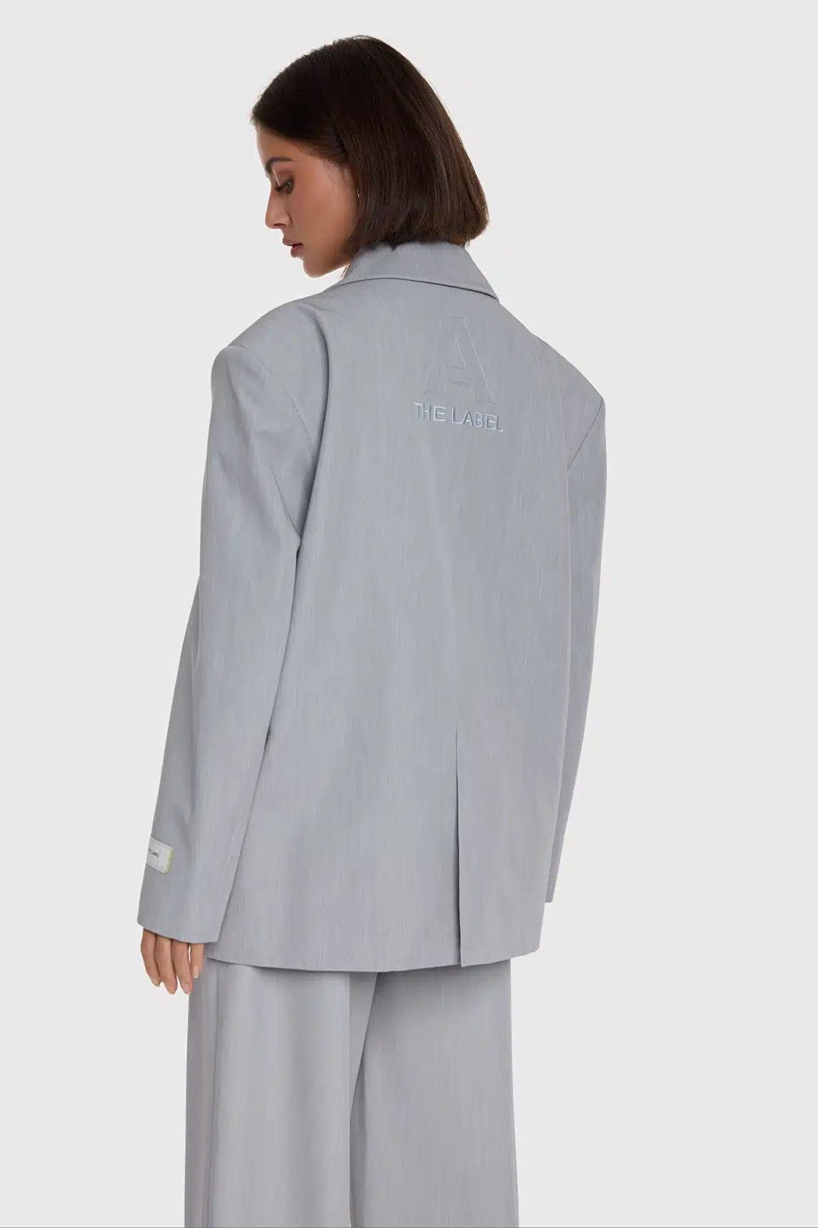Detail: “A THE LABEL” artwork met onafgewerkte (raw-cut) randen op de rug.